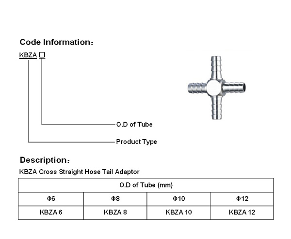Cross straight hose tail adaptor
